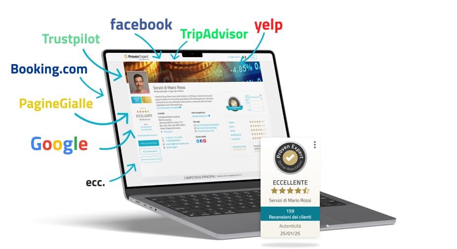 Le recensioni autentiche dei clienti sono la pubblicità più efficace al mondo. La tua buona reputazione raggiunge migliaia di potenziali clienti su Internet.